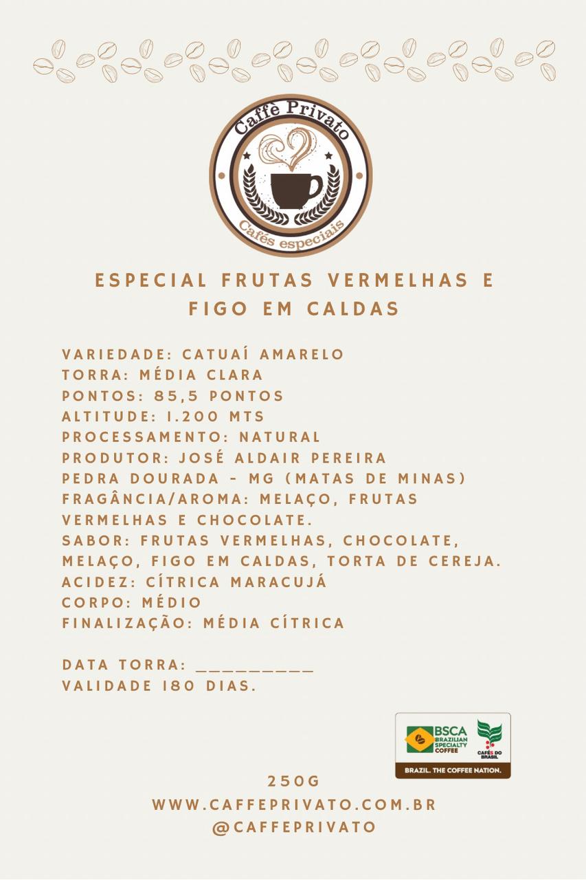 Café Especial Frutas Vermelhas e Figo em caldas 250g em grão ou moído.